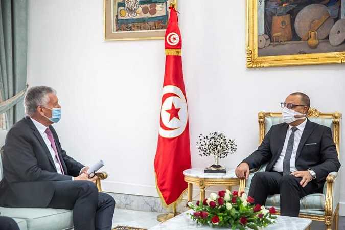 Le chef du gouvernement, Hichem Mechichi, a reçu, mardi 17 novembre 2020, à la Kasbah, l\’ambassadeur de France en Tunisie, André Parant.