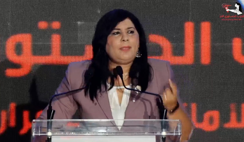 Abir Moussi en a profité pour réitérer ses critiques envers la nouvelle constitution, qui menace, selon elle, les acquis de la femme, la traitant de « Constitution de la République des Daechiens ».