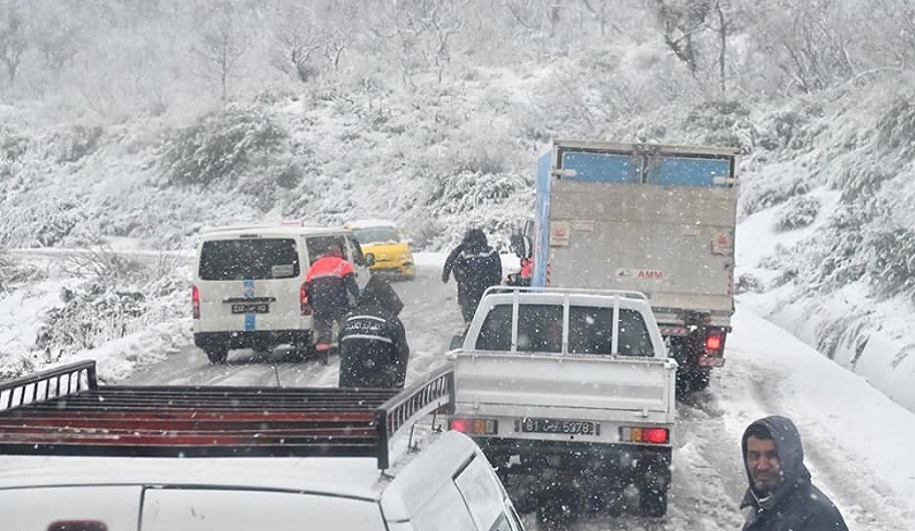 Plus tôt dans la journée, la Direction générale de la Garde nationale a annoncé, de son côté, que la route nationale N°17 reliant Tabarka à Aïn Draham est bloquée au niveau de Faj Al Atlel à cause des chutes de neige.