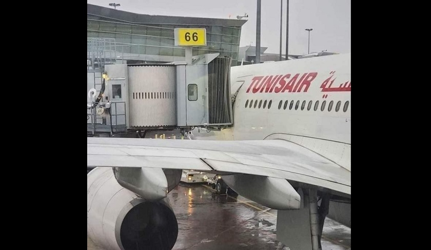 Un accident impliquant la passerelle mobile et la porte de l\’avion a entraîné l\’annulation du vol TU 203 de Tunisair à l\’aéroport de Montréal, au Canada.