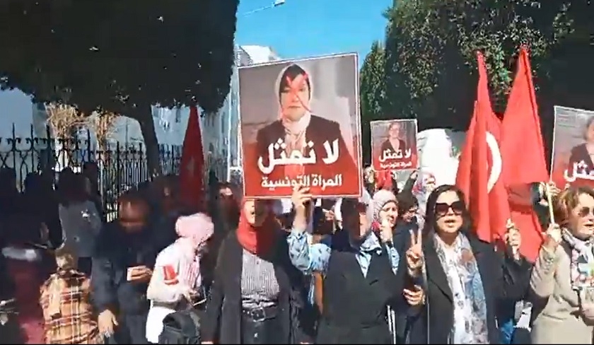 Le mouvement Femmes contre la tyrannie a organisé, mercredi 8 mars 2023, une manifestation de solidarité avec la membre du Front de salut national, Chaima Issa, détenue dans le cadre de l’affaire de complot contre la sûreté de l’État.