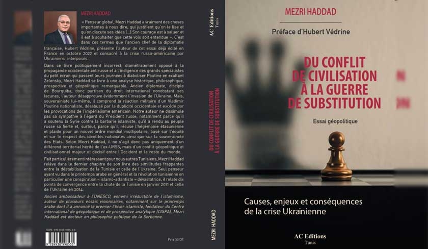 Mezri Haddad sera de retour en Tunisie du 2 au 8 avril à l\’occasion de la sortie de son nouveau livre « Du conflit de civilisation à la guerre de substitution ». Un débat autour de l\’œuvre aura lieu le 7 avril 2023 à la librairie Al Kiteb à 21 h.