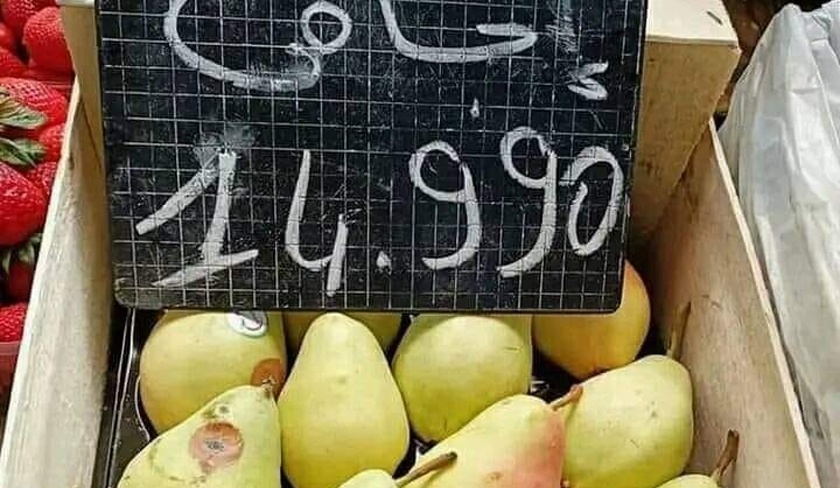 De nombreux internautes ont relayé une image montrant sur l’étiquetage le prix des poires en Tunisie. Cette photo qui a fait le tour des pages Facebook dévoile un tarif de 14,9 dinars pour le kilo de poires, un prix qui a choqué plusieurs Tunisiens. Certains se sont moqués de ces prix, ironisant qu\’il s\’agit « des fruits du paradis », tandis que d’autres personnes ont tout simplement décidé de boycotter les poires.