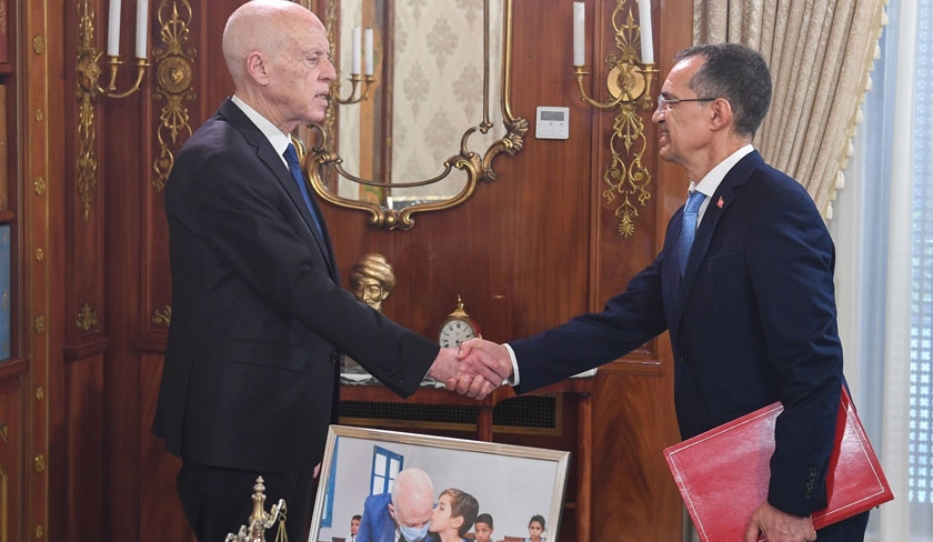Le président de la République, Kaïs Saïed, a reçu hier, lundi 12 mai 2025, au palais de Carthage, Ezzeddine Ben Cheikh, ministre de l’Agriculture, des Ressources hydrauliques et de la Pêche maritime, à l’occasion du 61e anniversaire de la promulgation de la loi n°5 du 12 mai 1964 relative à la propriété des terres agricoles en Tunisie.