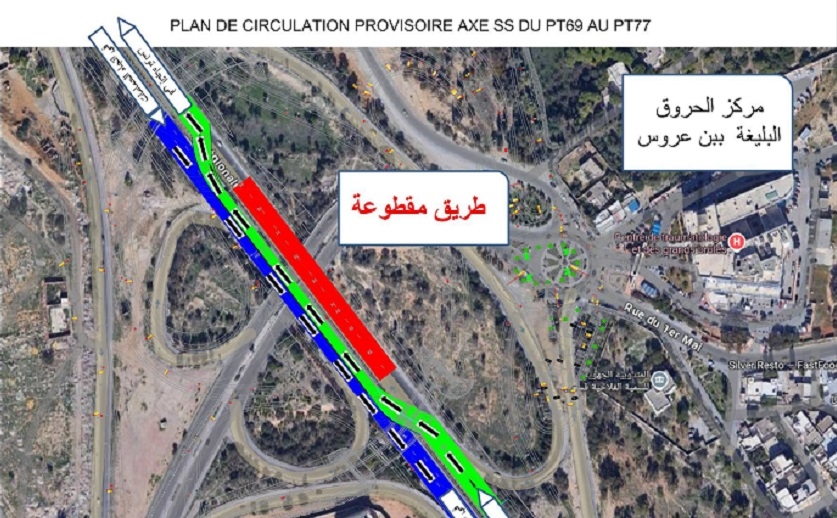 Le ministère précise que les usagers de la route en direction de Tunis pourront tourner à gauche pour emprunter la voie menant à Hammamet, laquelle sera exceptionnellement ouverte à la circulation dans les deux sens sur une distance d’environ 100 mètres, avant de tourner à droite pour rejoindre de nouveau la route en direction de Tunis.
