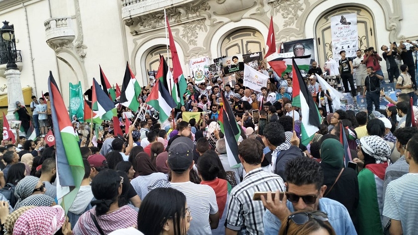Sur l’avenue Habib Bourguiba, les manifestants ont dénoncé les crimes de guerre commis contre les habitants de Gaza et les violations graves du droit international, dans un contexte de vive indignation mondiale, après l’enlèvement de plusieurs militants à bord de la Flottille Al Soumoud. Les centaines de militants arrêtés, dont 25 Tunisiens, transportaient des cargaisons médicales et alimentaires à destination de la population de Gaza, toujours soumise à un blocus étouffant.