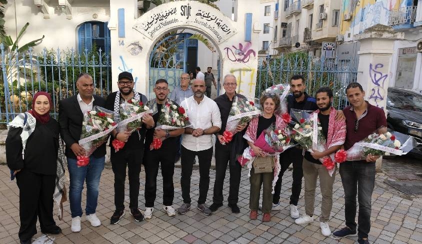 Le Syndicat national des journalistes tunisiens (SNJT) a rendu, mercredi 15 octobre 2025, hommage aux journalistes ayant pris part à la flottille Al Soumoud, initiative visant à briser le blocus imposé à Gaza.