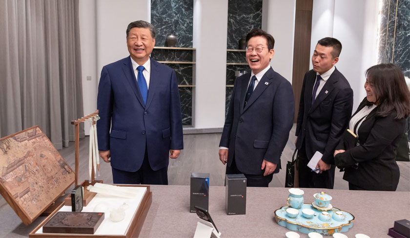 L’échange a eu lieu samedi à Gyeongju, ville du sud-est de la Corée du Sud, lorsque le président de cet État, Lee Jae-myung, et le Chinois Xi Jinping se sont offert des cadeaux en marge du sommet économique de l’Apec, marquant la première visite de M. Xi en Corée du Sud depuis plus de dix ans.