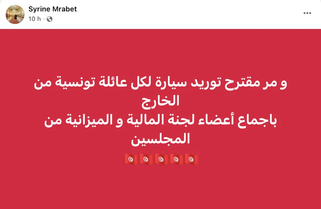 La commission des finances a validé, dans la soirée de mardi 25 novembre 2025, une initiative législative instituant un régime dérogatoire au profit des Tunisiens résidant sur le territoire national, leur ouvrant la possibilité — de manière non renouvelable — d’importer un véhicule ou d’en acquérir un auprès du marché local au tarif d’origine.