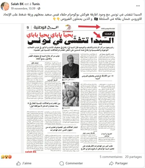 Un article publié le 18 novembre 2025 par le journal El Chourouk et relayé massivement sur Facebook affirme que « 10 % des Africains subsahariens en Tunisie portent le VIH ». Cette statistique, attribuée à un médecin local, est présentée comme un fait établi et alarmant. Mais après vérification, aucune étude, aucun rapport scientifique et aucune donnée institutionnelle ne confirment ce chiffre.