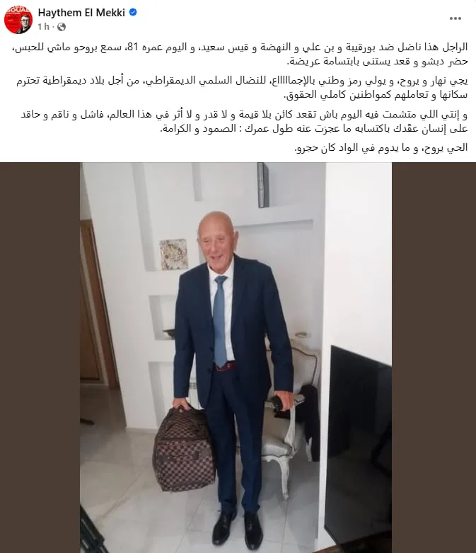 Le journaliste Haythem Mekki a souligné la stature historique et morale de M. Chebbi : « Cet homme a combattu contre Bourguiba, Ben Ali, Ennahdha et Qais Saïed. Aujourd’hui, à 81 ans, il sait qu’il va en prison, il a mis son costume et est parti en souriant. Il deviendra un jour un symbole national unanimement reconnu pour son engagement en faveur de la lutte pacifique et démocratique, pour un pays qui respecte pleinement ses citoyens. Quant à ceux qui se réjouissent aujourd’hui de son sort, ils resteront insignifiants et amers face à l’accomplissement de son courage et de sa dignité ».
