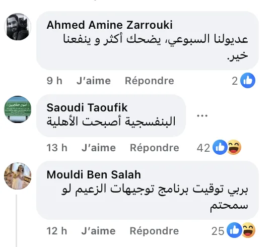Mais l’ambition pédagogique du programme a rapidement été éclipsée par les réactions des internautes. Dans la section commentaires sur la page de la Wataniya, le lancement s’est transformé en véritable séance de stand-up collectif. Certains s’étonnent de l’absence de pause musicale : « Il n’y a pas de pause musicale ? », ironise un internaute. D’autres réclament un retour aux programmes cultes : « Diffusez Sbouii, il nous fait rire, c’est mieux pour nous. »