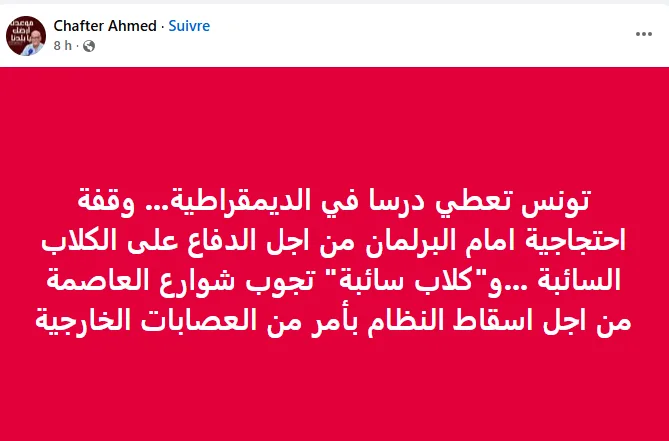 Plutôt que de répondre aux inquiétudes — fondées ou non — qui traversent une partie de l’opinion, Ahmed Chaftar fabrique une scène imaginaire : des « chiens » cherchant à renverser l’État. Une manière pratique d’esquiver le débat en transformant toute critique en menace orchestrée depuis l’étranger. Le procédé est connu : quand les faits dérangent, on les remplace par un décor.