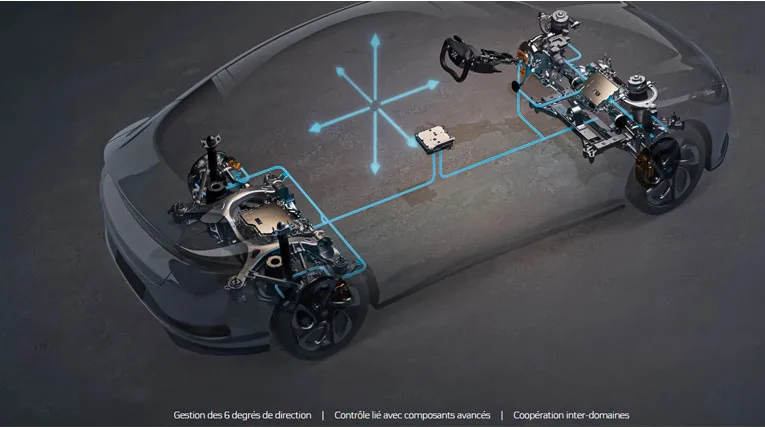 - Une architecture “châssis numérique IM” dotée d’un “cervelet” — un système informatique central — pour coordonner la conduite, le confort et la sécurité.