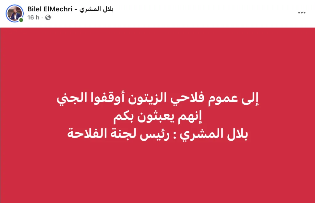 Face à une chute préoccupante du prix de l’huile d’olive, les députés tunisiens, dont le président de la Commission parlementaire Bilel El Mechri, ont lancé un appel urgent aux agriculteurs pour suspendre la récolte des olives. L’objectif étant de protéger les revenus des producteurs et d’éviter une aggravation de la crise.