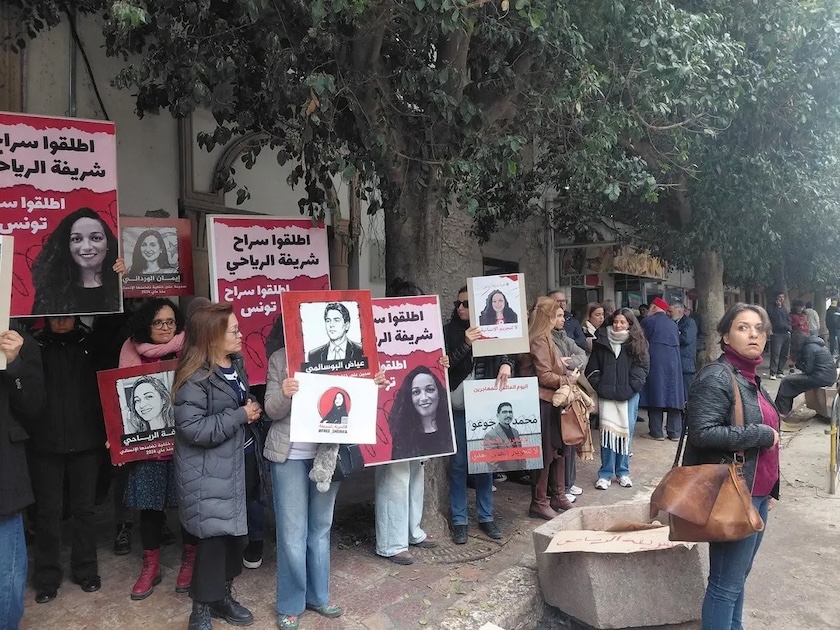 Sont concernés les militants civils Sherifa Riahi, Yadh Bousselmi et Mohamed Jouou, ainsi que Mohamed Iqbal Khaled et Imen Ouardani, élus municipaux à Sousse. Les autres accusés, au nombre d’environ vingt, sont poursuivis en état de liberté.