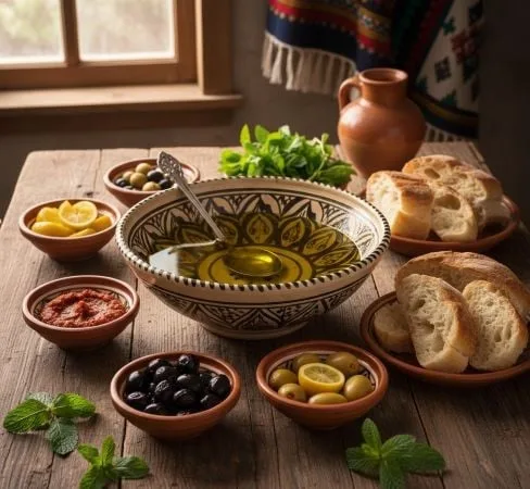 L’huile d’olive sublime la gastronomie tunisienne. Elle relève le couscous, parfume les tajines, accompagne les salades de poivrons grillés et même certaines pâtisseries. Chaque région a sa signature : les huiles légères et fruitées du Sahel diffèrent des huiles plus corsées et intenses du nord.