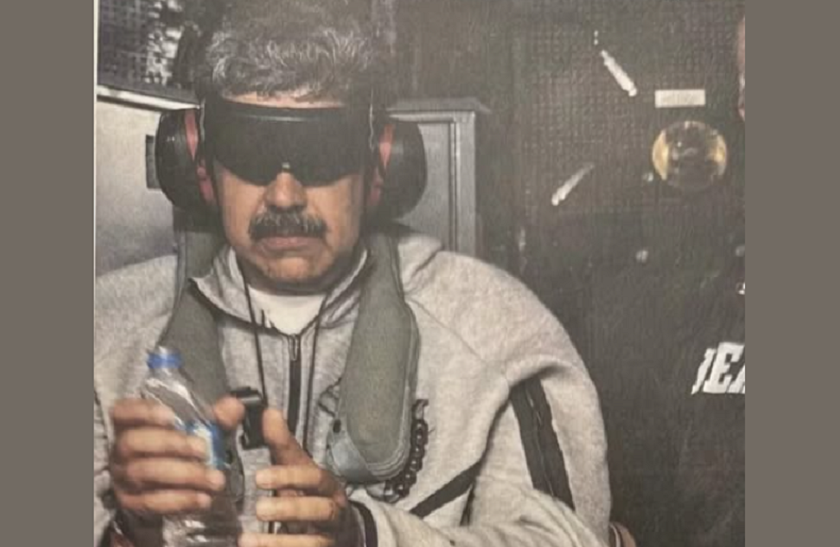 Sur ce cliché, Nicolás Maduro apparaît debout, vêtu d’une tenue de sport gris clair, tenant une bouteille d’eau à la main, équipé d’un masque, d’un casque antibruit et de sangles assimilées à un équipement de sécurité. L’image, présentée par Donald Trump comme ayant été prise à bord d’un navire militaire américain, a été accompagnée d’un message laconique affirmant que le président vénézuélien se trouvait sous contrôle américain.