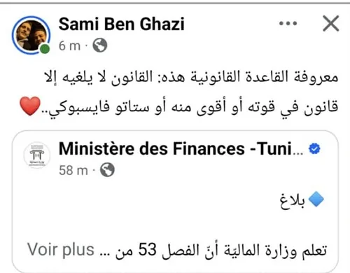 Sur les réseaux sociaux, de nombreux internautes ont rapidement pointé ce qu’ils considèrent comme une contradiction de fond. L’avocat Sami Ben Ghazi rappelle, avec une pointe d’ironie, qu’en droit, une loi ne peut être aménagée ou neutralisée que par une norme de même valeur ou supérieure, et non par un simple communiqué sur Facebook, fût-il officiel.