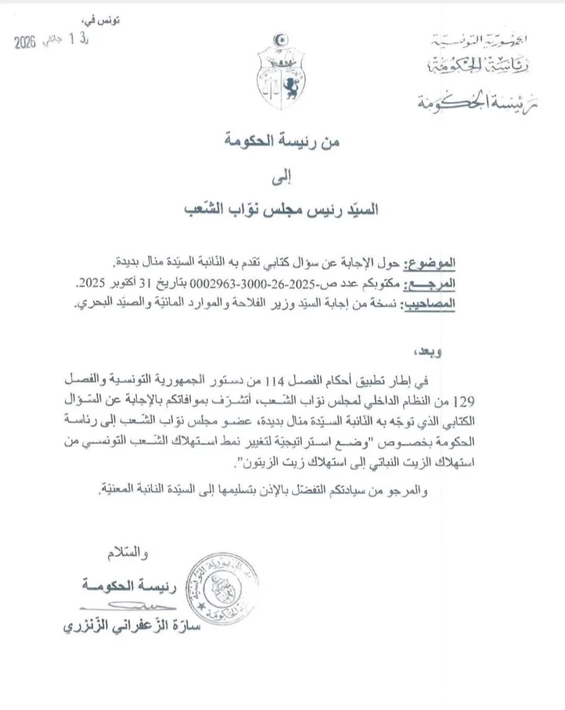 En dépit de son statut de grand pays producteur d’huile d’olive, la Tunisie demeure marquée par une faible consommation intérieure de ce produit emblématique. C’est ce paradoxe qu’a mis en lumière la réponse du ministère de l’Agriculture à une question écrite de la députée Manel Bedida. Au cœur de cette réponse, un chiffre interpelle : la consommation annuelle moyenne d’huile d’olive ne dépasse pas trois litres par personne, un niveau jugé modeste au regard du potentiel national et des bénéfices nutritionnels reconnus de ce produit.