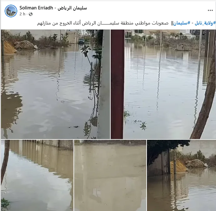 Dans la délégation de Soliman, plusieurs vidéos montrent les difficultés rencontrées par les habitants du quartier Soliman Erriadh, contraints de lutter contre des rues complètement inondées pour pouvoir quitter leurs domiciles. Des flaques profondes et des axes impraticables ont paralysé les déplacements, suscitant l’inquiétude des riverains.