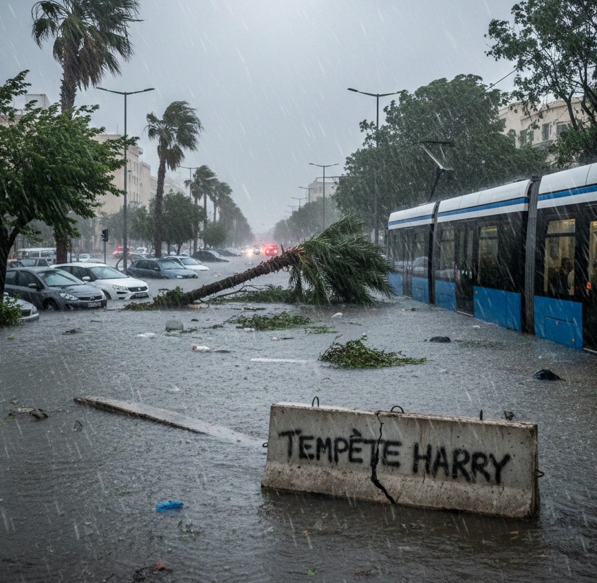 Depuis le début de la semaine, la Tunisie est confrontée à la tempête Harry, un épisode pluvieux et venteux exceptionnel qui affecte plusieurs régions du pays. Selon l’Institut National de Météorologie (INM), la tempête a apporté des précipitations abondantes, des rafales de vent pouvant dépasser 80 km/h, et des chutes de grêle localisées, perturbant fortement le quotidien des citoyens.