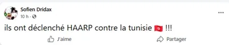 Parmi les publications les plus partagées, on peut lire que « HAARP a été déclenché en Tunisie », que les « chemtrails » seraient utilisés pour manipuler le climat, ou encore que des institutions comme le GIEC ou la DARPA participeraient à un plan secret mondial pour la période 2026-2030, avec la complicité des autorités tunisiennes. Ces affirmations, bien que spectaculaires, relèvent des théories du complot répandue et ne reposent sur aucun élément vérifiable.