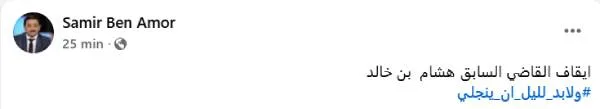 Le magistrat révoqué Hichem Khaled a été arrêté, jeudi 5 février 2026. L’information a été rendue publique par plusieurs personnalités, dont l’avocat Samir Ben Amor, sans qu’aucune communication officielle n’ait, à ce stade, précisé les motifs de cette arrestation.
