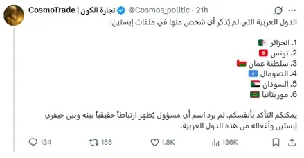 Certains tweets affirment que la Tunisie ferait partie des « rares pays non cités » dans les fameux « Epstein Files ».