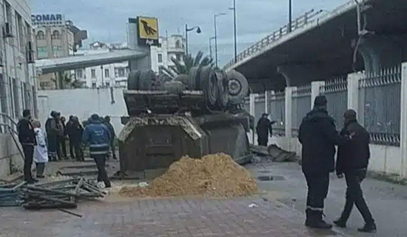 Un accident de la route impressionnant a eu lieu au matin du mardi 17 février 2026. Un camion lourd qui transportait visiblement du sable, entre autres matériaux, a franchi la glissière de sécurité du pont de la République pour se retrouver en bas de l’ouvrage.