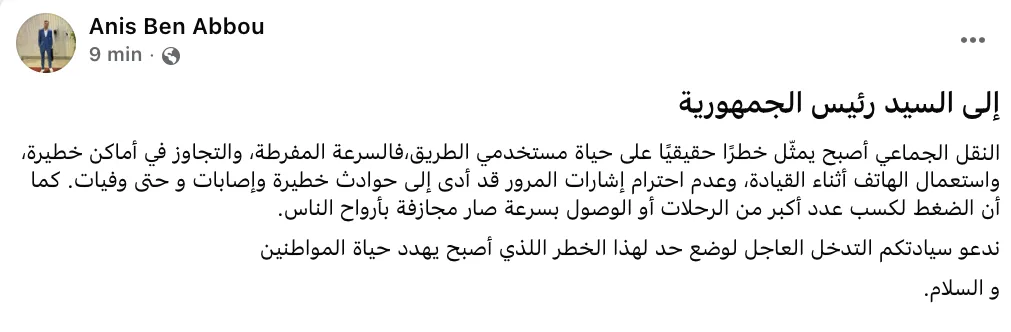 Un autre s’est adressé directement au chef de l’État : « À Monsieur le président de la République, le taxi collectif constitue aujourd’hui un danger réel pour la vie des usagers de la route. Les excès de vitesse, les dépassements dans des zones dangereuses, l’usage du téléphone au volant et le non-respect des feux et panneaux de signalisation ont provoqué des accidents graves, des blessures, voire des décès. De plus, la pression exercée sur les conducteurs pour multiplier les trajets ou atteindre rapidement leur destination transforme chaque course en un risque pour la vie des citoyens. Nous sollicitons respectueusement votre intervention immédiate afin de mettre un terme à ce péril qui menace quotidiennement la population. »