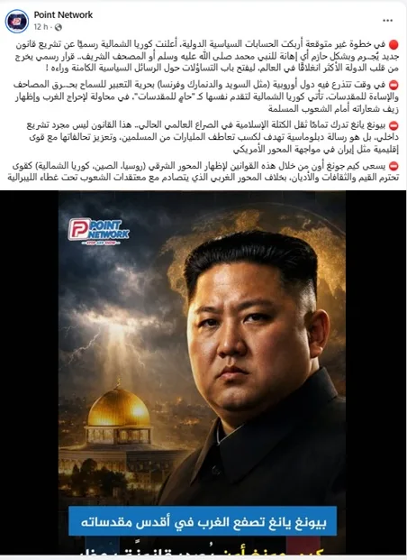 Enfin, aucune preuve ne vient étayer l’idée selon laquelle Pyongyang chercherait à adopter une stratégie législative pour renforcer des alliances avec des pays majoritairement musulmans sur la base de la défense des symboles religieux. Si la Corée du Nord entretient certaines relations diplomatiques avec des États du Moyen-Orient, les analyses des relations internationales ne mentionnent pas de campagne politique ou juridique visant à se présenter comme un « protecteur » des valeurs religieuses dans le monde musulman.