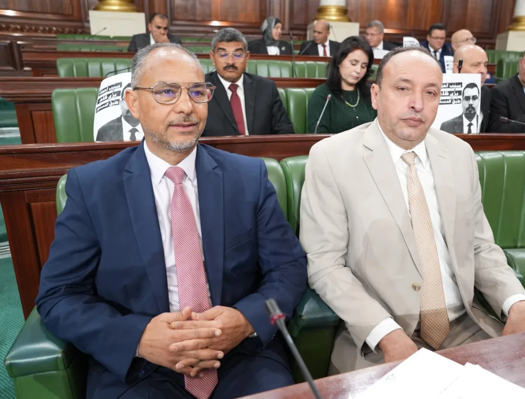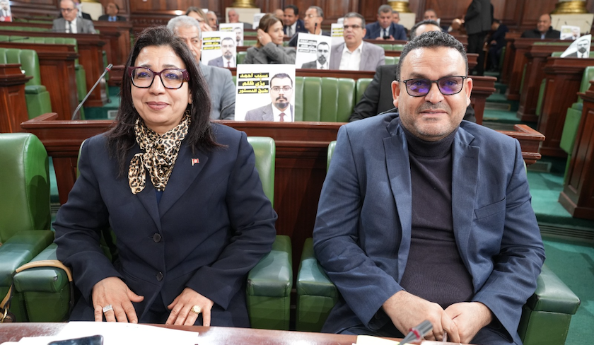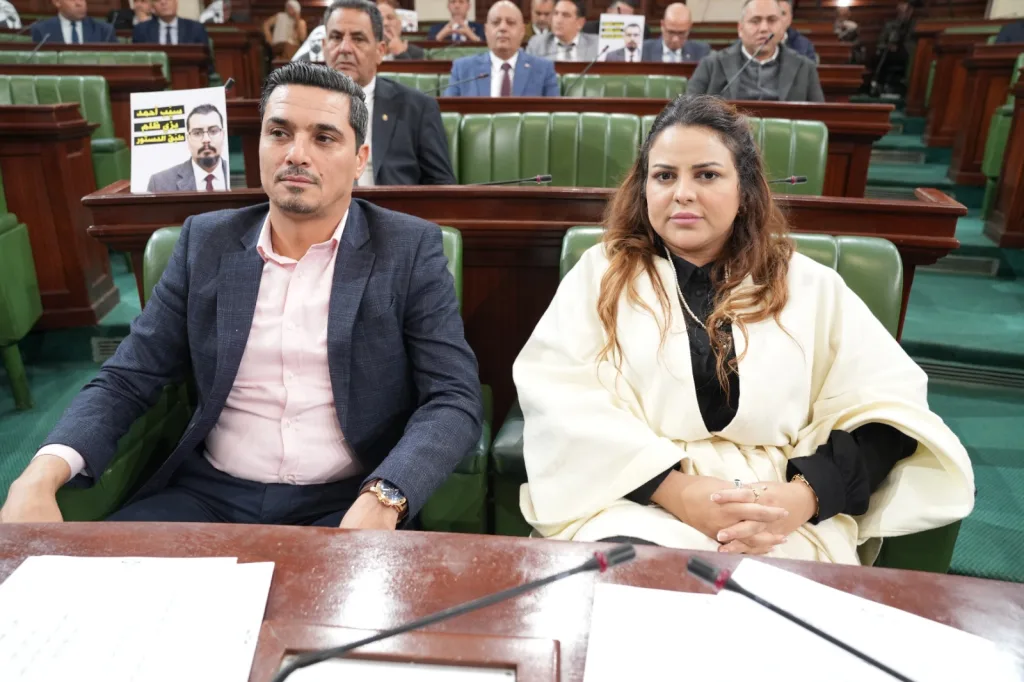Lors de l’ouverture de la séance plénière du mardi 10 mars 2026, sous la présidence de Brahim Bouderbala, président du Parlement tunisien, plusieurs députés ont affiché des posters en signe de protestation et de solidarité avec leur collègue Ahmed Saïdani, réclamant sa libération immédiate.