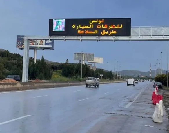 Les travaux d’installation de panneaux à messages variables (PMV) ont débuté au matin du 16 mars 2026 au point kilométrique 9, avant la station de péage de Mornag en direction de Sousse, dans le cadre de la poursuite du développement du système de sécurité et de communication avec les usagers de l’autoroute, annonce la société Tunisie Autoroutes sur sa page Facebook.