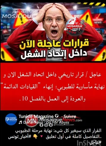 Une publication relayée sur la page Facebook « Tunisie Magazine » le jeudi 26 mars 2026 a déclenché une vague de réactions sur les réseaux sociaux. Le message évoque des « décisions urgentes au sein de l’UGTT» et présente la situation comme un tournant définitif, parlant de « la fin de Noureddine Taboubi » et d’un retour aux anciennes règles internes. Très vite, la publication a été partagée et commentée, certains internautes estimant que le secrétaire général de l’Union générale tunisienne du travail (UGTT) aurait été politiquement écarté, tandis que d’autres ont dénoncé une exagération et une tentative de manipulation de l’opinion.