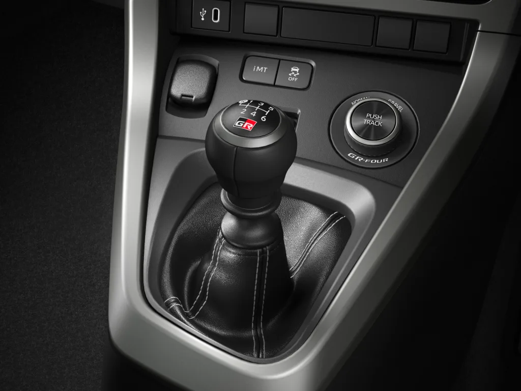 La nouvelle disposition des commandes résulte également de l’expérience acquise en sport automobile, où les pilotes tournent parfois le volant de 180 degrés sans modifier la position de leurs mains. Avec les volants traditionnels, cela peut entraîner des activations accidentelles des boutons situés sur les branches. Sur le nouveau volant de la GR Yaris, tous les boutons sont éloignés des mains du conducteur pour éliminer ce problème. Le volant de la GR Yaris MY 2026 est recouvert d’un cuir noir avec des surpiqûres rouges ou blanches, en fonction du choix de la sellerie, et reçoit un nouvel emblème GR en son centre.