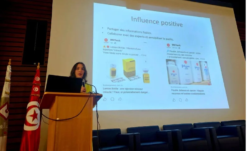 Parmi les interventions, celle de Rabeb Aloui, directrice de BN Check et vice-présidente de Association tunisienne des médias et de l’intelligence artificielle, a dressé un constat sans concession sur les dérives informationnelles qui fragilisent aujourd’hui la santé publique.