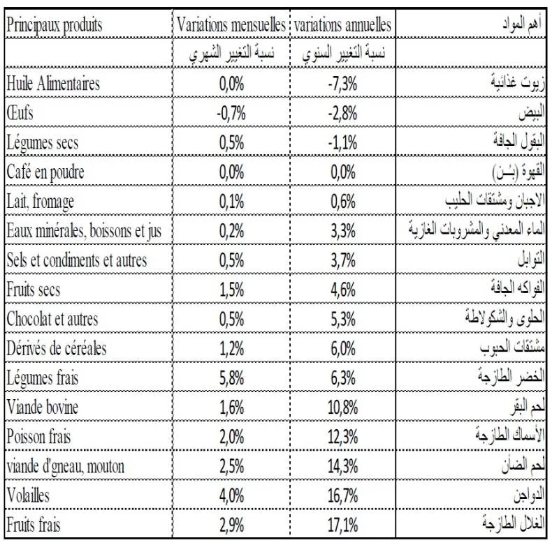 Le rythme des prix du café et des huiles alimentaires demeure stable. En revanche, les prix des œufs ont diminué de 0,7%.