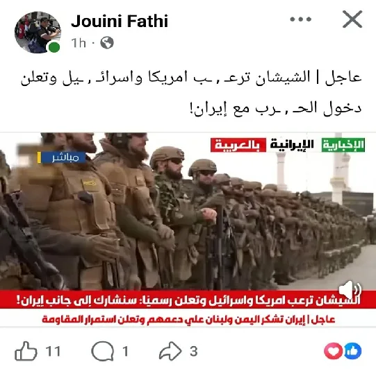 Une information virale circule depuis plusieurs heures sur Facebook, affirmant que la Tchétchénie serait entrée en guerre aux côtés de l’Iran, une décision présentée comme capable de « terrifier les États-Unis et Israël ». Relayée massivement par des pages et comptes aux contenus sensationnalistes, cette affirmation a rapidement suscité inquiétude et interrogations. Pourtant, dès les premières vérifications, plusieurs incohérences majeures apparaissent, appelant à un examen rigoureux des faits.