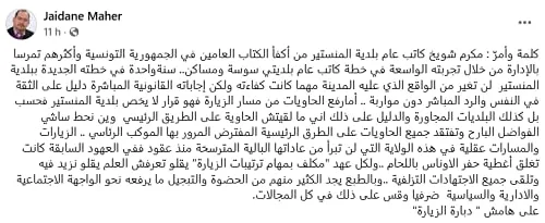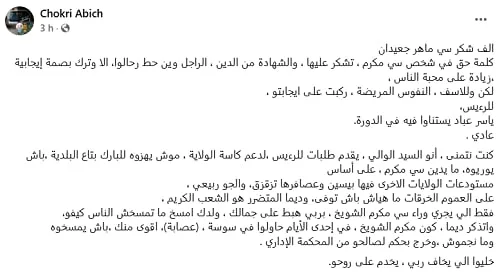 Sur le plan local, Makrem Chouikh jouissait pourtant d’une certaine popularité. À l’annonce de son limogeage, plusieurs témoignages de soutien et hommages ont été exprimés, notamment sur les réseaux sociaux, saluant son engagement et son accessibilité.