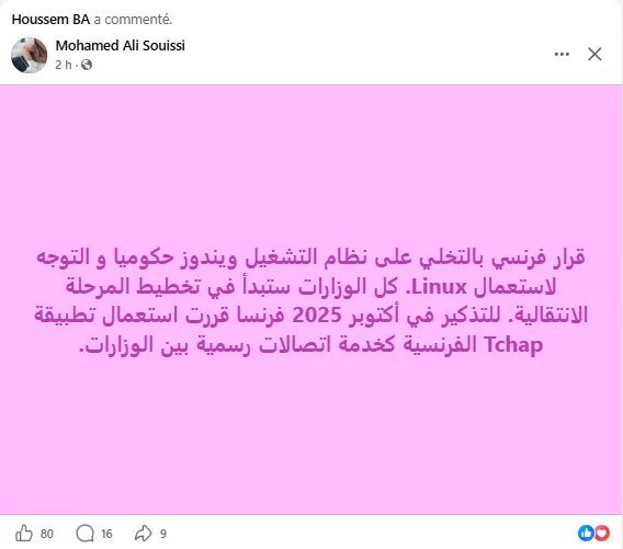 En Tunisie, ces publications ont suscité de nombreuses réactions. Entre étonnement et curiosité, plusieurs internautes se sont interrogés sur les raisons d’un tel choix, certains y voyant une rupture politique avec les grandes entreprises technologiques américaines, d’autres évoquant une volonté de réduction des coûts ou encore un souci de sécurité des données. D’autres encore ont interprété cette annonce comme un signal fort que d’autres pays pourraient suivre, alimentant un débat plus large sur la souveraineté numérique.