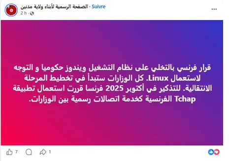 Sur Facebook, des publications largement partagées affirment que « la France a décidé d’abandonner le système d’exploitation Windows au niveau gouvernemental pour se tourner vers Linux », ajoutant que « tous les ministères vont entamer une phase de transition ».