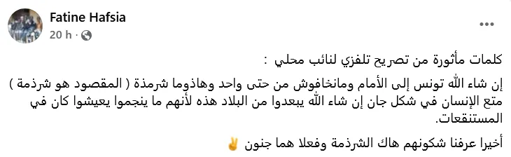 Parmi les réactions les plus relayées, celle du journaliste Fatine Hafsia, qui résume avec ironie : « On sait désormais à qui l’on a affaire. Des djinns ! »