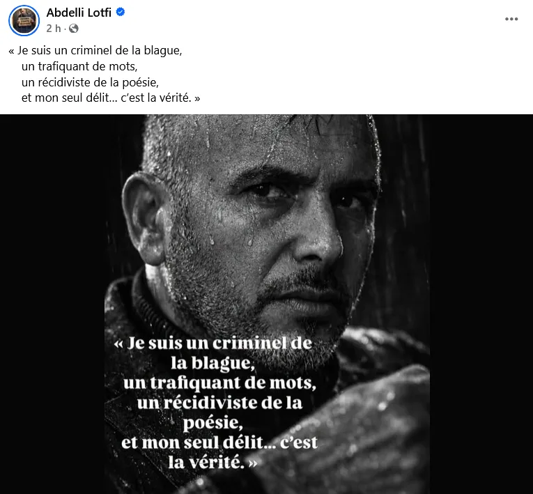 C’est par ces mots, à la fois ironiques et amers, que l’acteur et humoriste Lotfi Abdelli a réagi, samedi 18 avril 2026, à sa condamnation à 18 mois de prison.