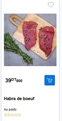 Car, dans le même temps, les prix de la viande affichés ce matin mardi 28 avril 2026 sur le site de Carrefour Tunisie racontent une tout autre réalité. La « habra de bœuf » est proposée à 39,500 dinars le kilo, tandis que le steak haché assaisonné est affiché à 38 dinars le kilo. Le blanc de poulet est 15,900 dinars le kilo, alors que la habra de dinde est à 22,350 dinars.
