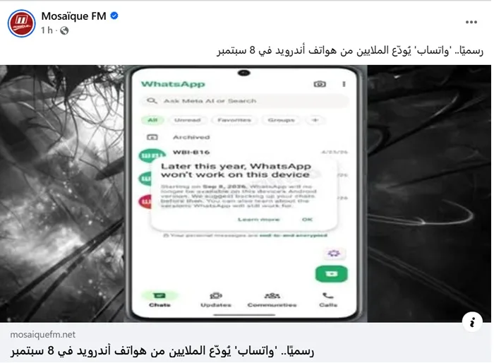 Plusieurs publications et plateformes d’information ont relayé une annonce affirmant que WhatsApp ne sera plus accessible sur Android. Très vite, cette information a suscité de nombreuses interrogations, certains internautes craignant une interruption totale du service sur les smartphones Android. Face à cette vague de confusion, nous avons vérifié l’origine de cette annonce et ce qu’elle signifie réellement.