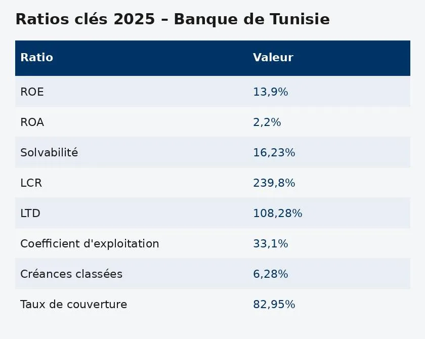 Au-delà des résultats, la solidité de la Banque de Tunisie se reflète dans ses principaux ratios.