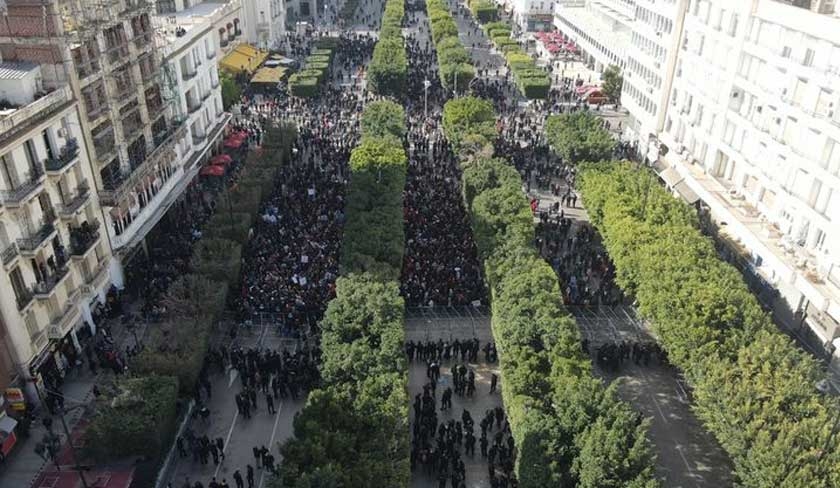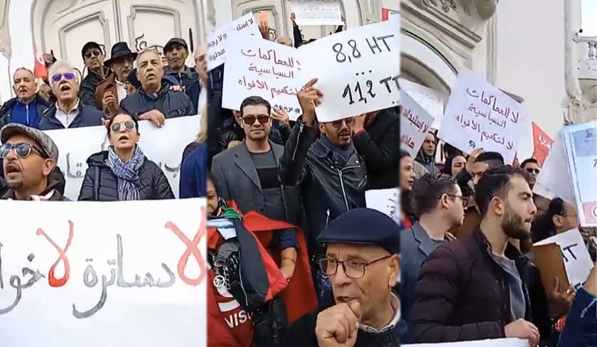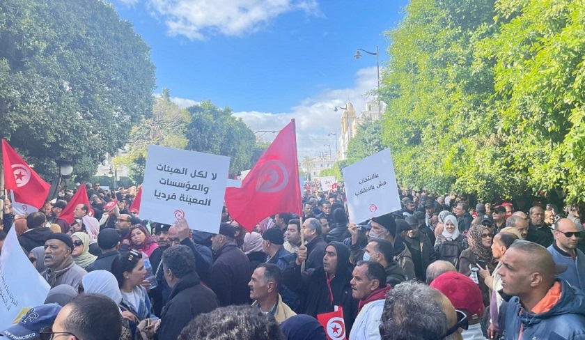 Non classé En photos : manifestation d’Ettakatol, Al Joumhouri, Al Qotb, le parti des Travailleurs et Attayar 14/01/23