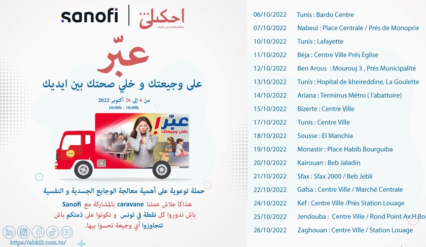 Non classé Sanofi Tunisie lance une caravane mobile de sensibilisation contre la douleur silencieuse 06/10/22