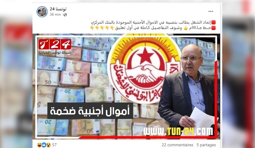 Non classé L’UGTT réclame sa part de fonds étrangers détenus par la Banque centrale ? Ce qu’il en est 20/03/24